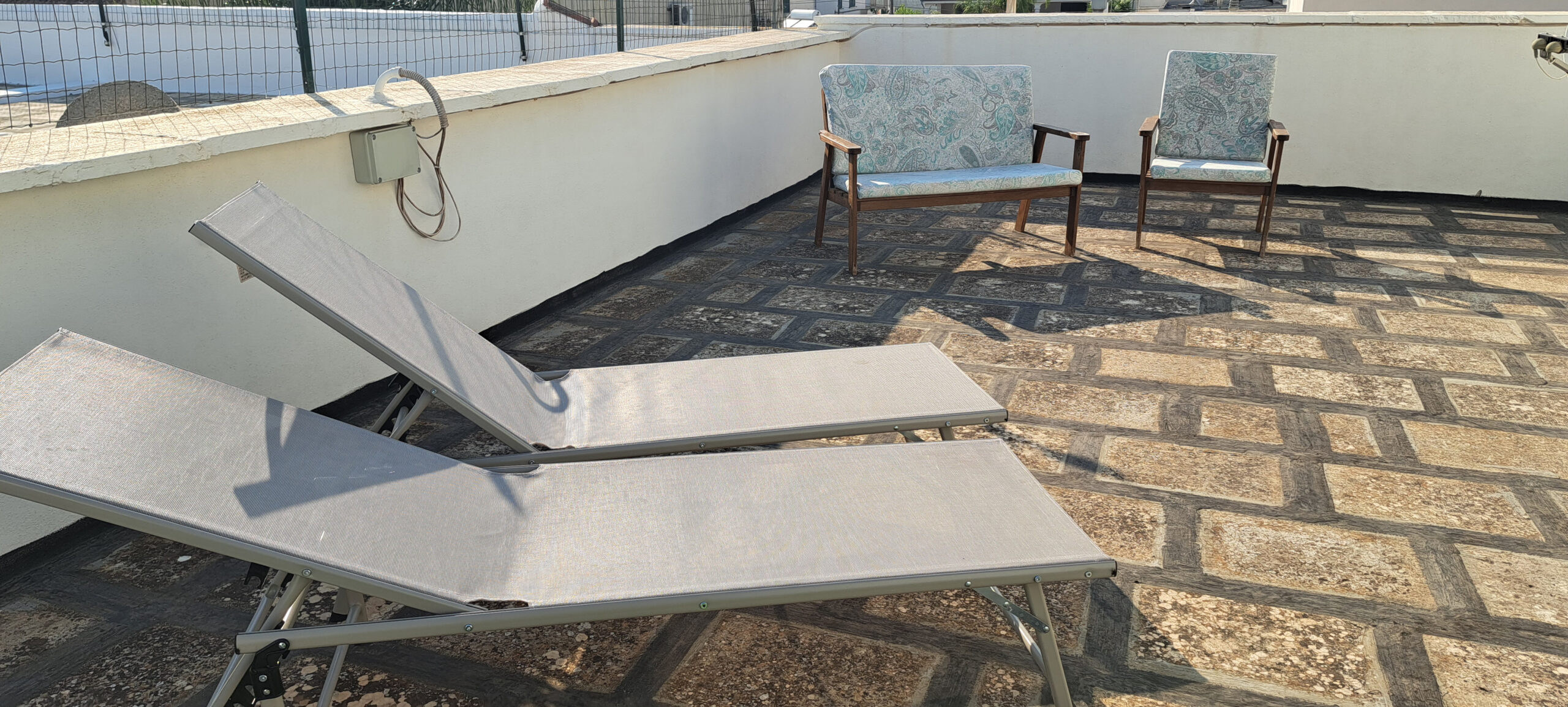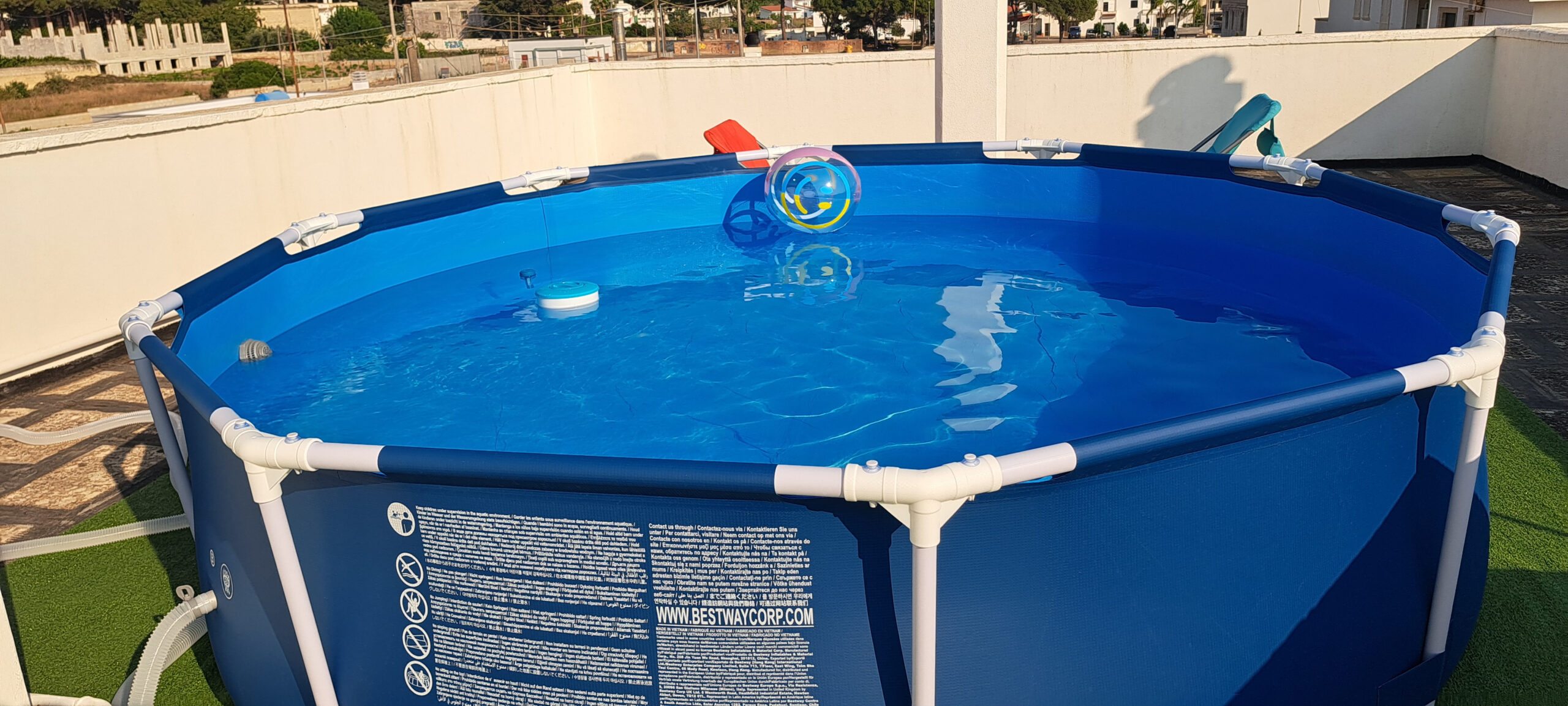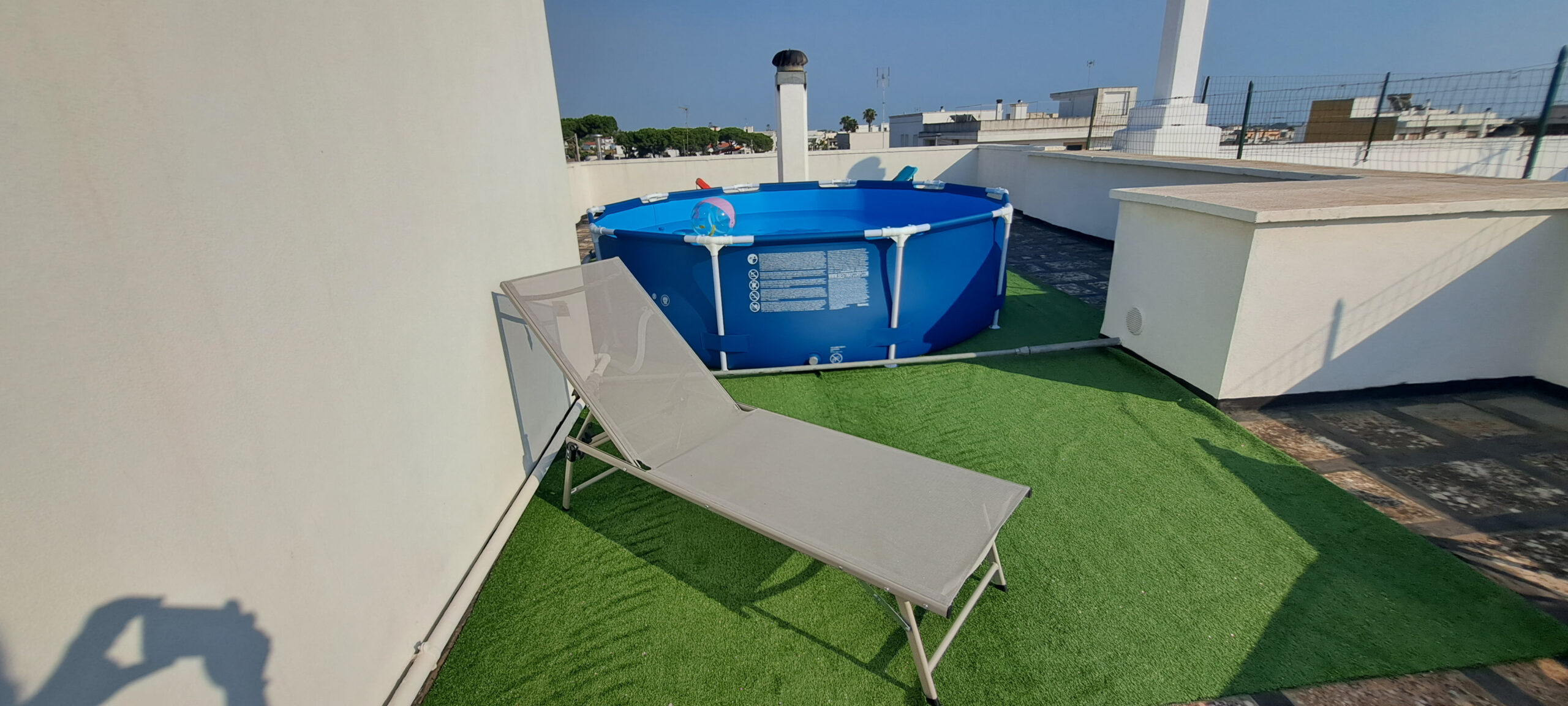 Rinfrescati nella piscina condivisa, un’oasi di relax immersa nel verde, ideale per rilassarsi dopo una giornata al mare.